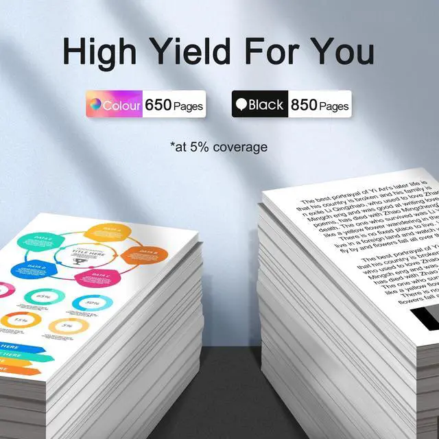 High Page Yield: Up to 850 pages per black and 650 pages per color5% coverage