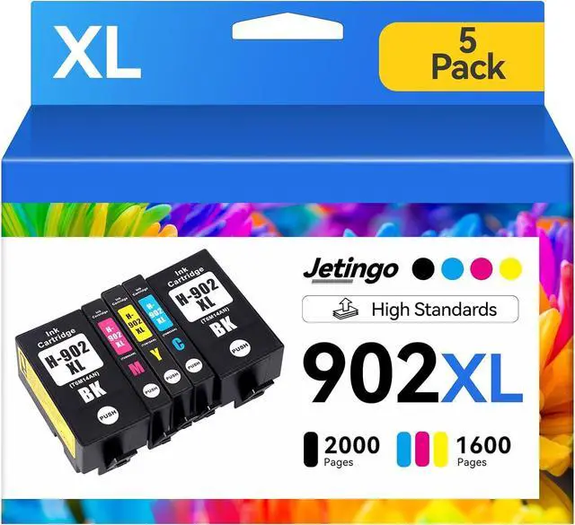 Package Contents: 902XL ink cartridges combo pack contains 2x Black 902 XL, 1 x Cyan 902 XL, 1 x Magenta 902 XL, 1 x Yellow 902 XL (5cartridges in total)