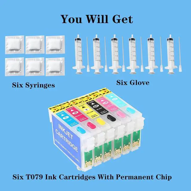 Empty ink cartridge set: You will get 6 empty ink cartridges, which we have marked with corresponding colors for easy distinction, and 6 ink injectors, which will allow you to easily fill the ink cartridges.Our ink cartridge has been equipped with disposable chips, which saves you the trouble of buying chips and is very convenient to use.