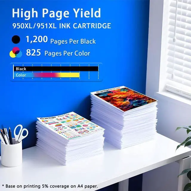 High Page Yield: 1,200 pages for 934XL Black Ink Cartridge& 825 Pages for 935XL Color Ink Cartridge (Letter A4, at 5% coverage)