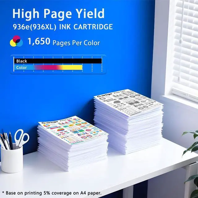 High Page Yield: 1,650 Pages for 936e/936XL Color Ink Cartridge (Letter A4, at 5% coverage)
