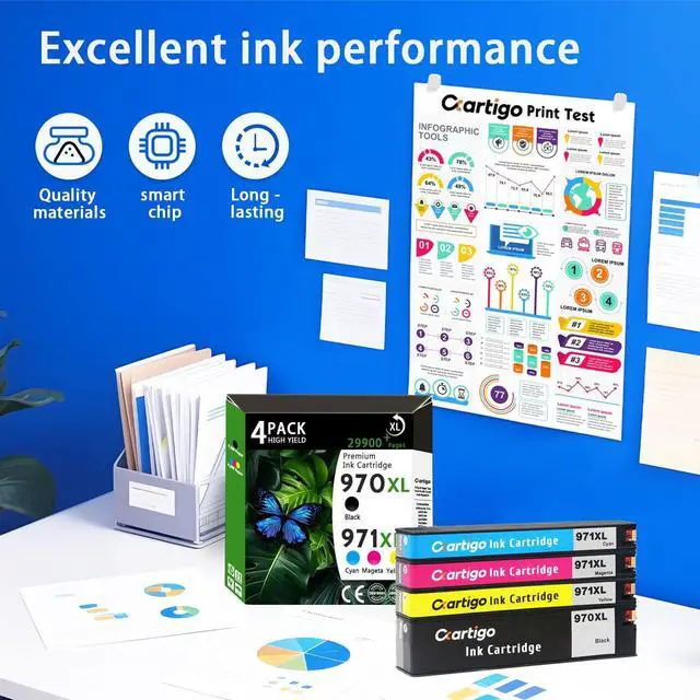High quality: Our 970XL/971XL Ink Cartridges deliver vibrant, smudge-free prints with sharp text and rich colorsperfect for businesses, schools, hospitals, or frequent home users who demand professional results