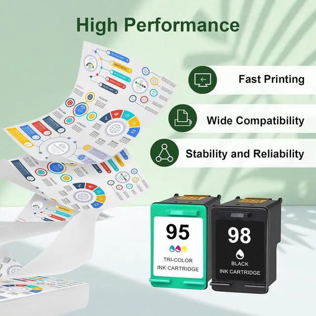 Package includes: 98/95 ink cartridges combo pack compatible for hp95 ink cartridges (Not OEM product)
