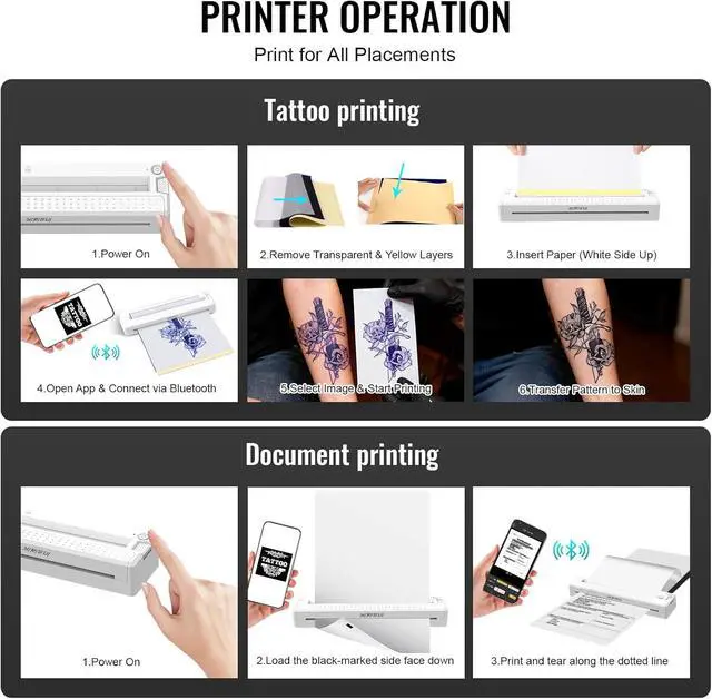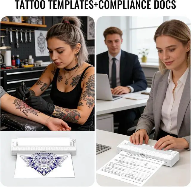 Dual-Function Tattoo Printer: Convenience at Your Fingertips2-in-1 Tattoo & Document Printeressential for beginners and professional tattoo artists alike! One device eliminates the hassle of switching between tools, handling two critical needs: High-definition tattoo stencil printing (sharp lines for accurate inking); Clear document printing for tattoo services (design proofs, appointment calendars, aftercare instructions) and daily life (homework, business deals). Perfect for studio work, on-site services, and everyday use. Note: Paper quality directly impacts print resultschoose quality supplies.
