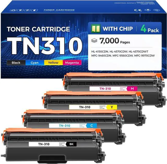 Package Content: 4-pack toner cartridges combo pack (1 × TN310 Black, 1 × TN310 Cyan, 1 × TN310 Magenta, 1 × TN310 Yellow toner Cartridge)