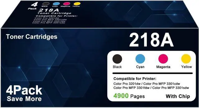 Printer Compatibility: 4 pack 218 A 218 X Toner Cartridge Compatible with Color Pro 3201dw; Color MFP 3301cdw 3301fdw 3301sdw.