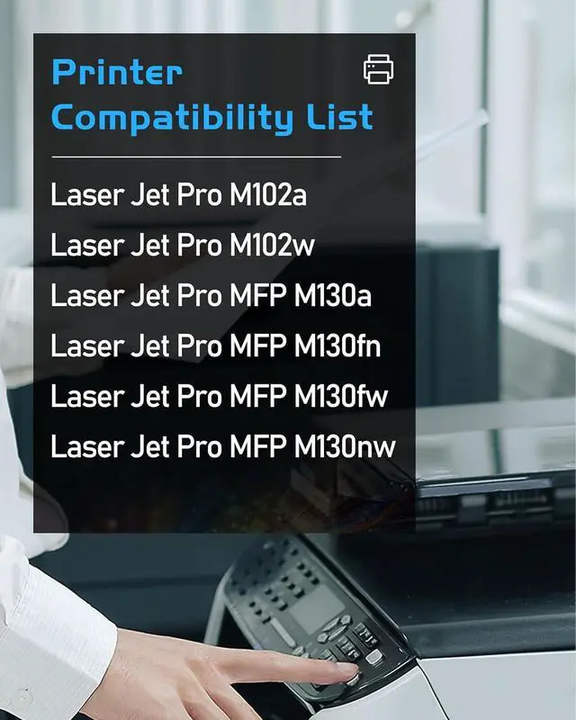 Printer Compatibility: Compatible with the 17A black toner cartridge (CF217A) for use with LaserJet Pro M102a, M102w, MFP M130a, MFP M130fn, MFP M130fw, MFP M130nw