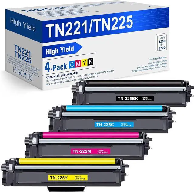Product Content: 4 Pack TN221 TN225 High Yield Toner Cartridge(Black/Cyan/Magenta/Yellow)