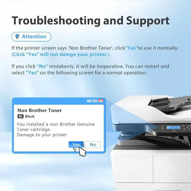 Our TN-221 TN225 toner cartridges deliver fine grain, clear printing, high blackness value, firm fixing and no ghosting, giving you vivid and natural prints