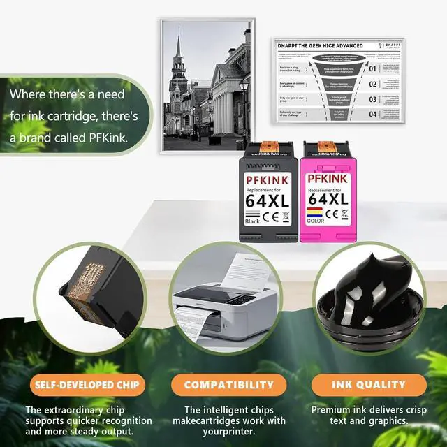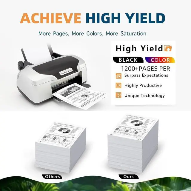 Higher Page Yield: 700 pages per 64xl black ink cartridge, 600 Pages Per tri-color PFKink 64xl