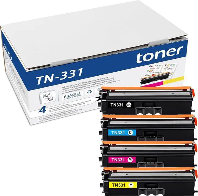 Package Includes: 4-Pack TN331 Toner Cartridges (TN331BK,TN331C, TN331M, TN331Y) Compatible with Brother TN-331