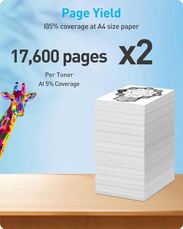 PAGE YIELD & PACKAGE: Each cartridge delivers an impressive page yield of approximately 17,600 pages at 5% coverage.