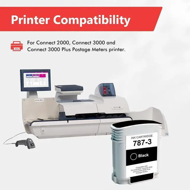 4This is a compatible direct replacement for Pitney Bowes 787-3 Ink Cartridge for the Connect 2000, Connect 3000 and Connect 3000 Plus Mailing Machines.