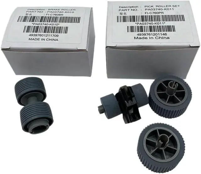 1set PA03740-K011 PA03740-K010 Pickup Feed Roller For FI-7600 FI7600C FI7700 FI7700S Paper Pickup Roller Copier Parts This pickup feed roller set is designed for use in FI-7600, FI7600C, FI7700, and FI7700S document scanners.The kit includes both the PA03740-K011 and PA03740-K010 rollers, which are essential components for paper feeding during scanning operations.These rollers help maintain consistent document flow and reduce the risk of jams or misfeeds.Installation is straightforward, allowing for quick replacement of worn or damaged parts.Suitable for routine maintenance and repair of compatible scanner models.