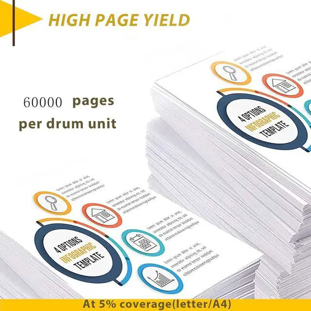 High Yield: 60000 pages per black drum unit .