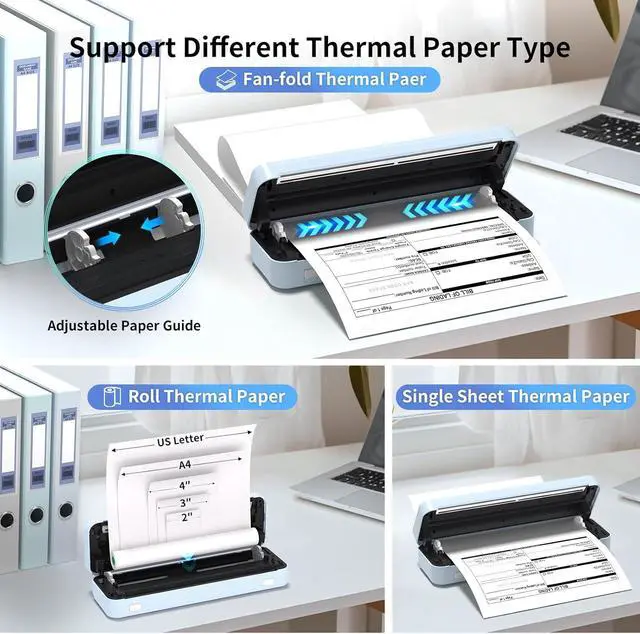 Compact and Portable Design with Strong Compatibility: The lightweight and compact build makes it easy to carry in your bag, and it supports 8.5X11 inch, A4, 3 Inch, 2Inch thermal paper for versatile printing. This travel printer is perfect for remote work, meetings, or printing documents on the go.