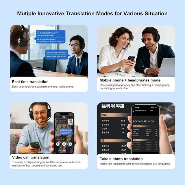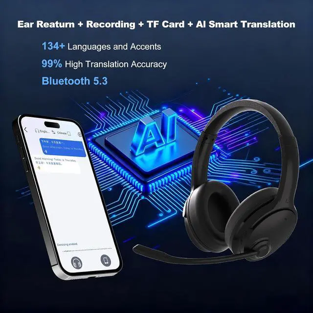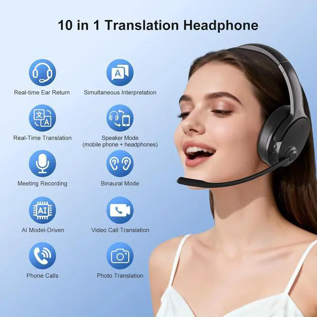 AI Real-Time Translation in 144 LanguagesSupports real-time two-way translation across 144 languages and dialects, covering English, Spanish, French, German, Chinese, Japanese, Korean and more. Whether for international travel, business meetings, online classes, remote meetings, online courses, Language Study or academic exchanges, this headset ensures smooth and accurate cross-language communication