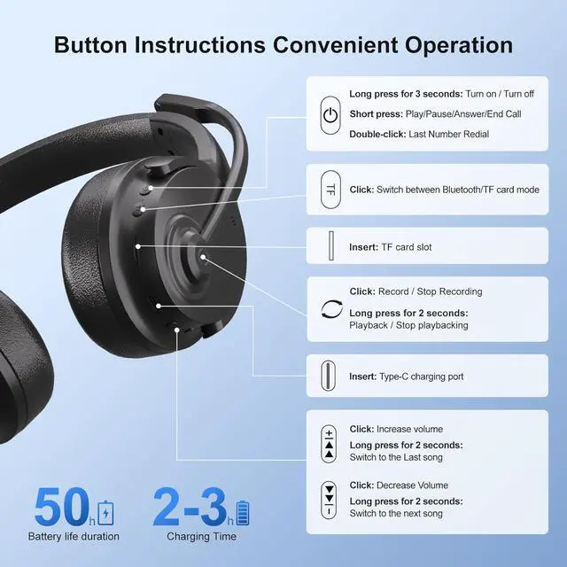 Long Battery Life & Dual Connection Modes:Built with efficiency in mind, providing up to 60 +hours of continuous use for translation, recording, or music playback. Supports Bluetooth connection for seamless pairing with smartphones. :TF card mode for offline playback or recording, Store local recordings from headphones,Ensuring flexibility in different usage scenarios.