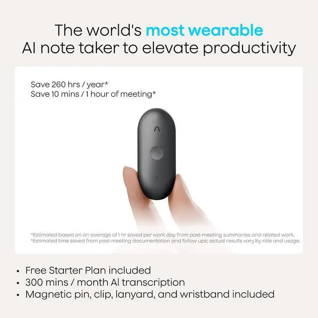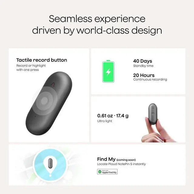 Multiple Ways To Wear With Included Accessories: Adapt Plaud NotePin S to any workflow instantly with four included accessories. Wear your device effortlessly as a necklace, wristband, clip, or pin. Plaud NotePin S features a dedicated physical record button for precise, tactile control. Stay professional and keep your intelligence within reach all day