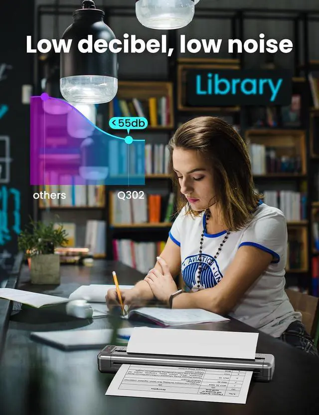 Phomemo Q302 Thermal Printer - Silent Printing Upgrade: Phomemo Q302 portable thermal printer offer 4 different print sizes for you to choose from: US Letter, A4, B5, A5. The various print sizes can meet the printing needs of different scenarios, whether it is a contract, report or personal documents can be easily dealt with. Phomemo Q302 wireless printer can also do silent printing, as an entrepreneur or businessman, you can use this printer in meetings and other silent occasions, which will bring great convenience to your work