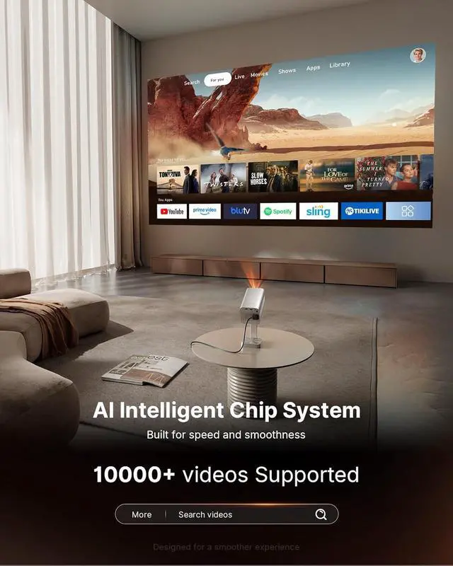 [Smart Projector with Officially-Licensed APP Stream Anywhere] - This projector compatible with Netflix comes with built-in streaming apps for the ultimate convenience. Whether youre enjoying a cozy night in bed or camping under the stars, just a tap lets you stream thousands of movies and shows from Netflix, Prime Video, YouTube, and more. With smooth performance, vivid visuals, and reliable stability, this video projector brings the big-screen experience to any place, anytime.