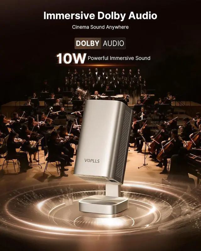 [Immersive Dolby Audio Where Every Scene Sounds Cinematic] - This outdoor projector with wifi and bluetooth Powered by Dolby Audio, every whisper, beat, and explosion comes alive with stunning clarity and depthturning your bedroom, living room, or backyard into a personal theater. This small projector for bedroom coupled with ultra-fast WiFi 6 and Bluetooth 5.2, enjoy smooth streaming and seamless device pairing with sound that truly surrounds you.
