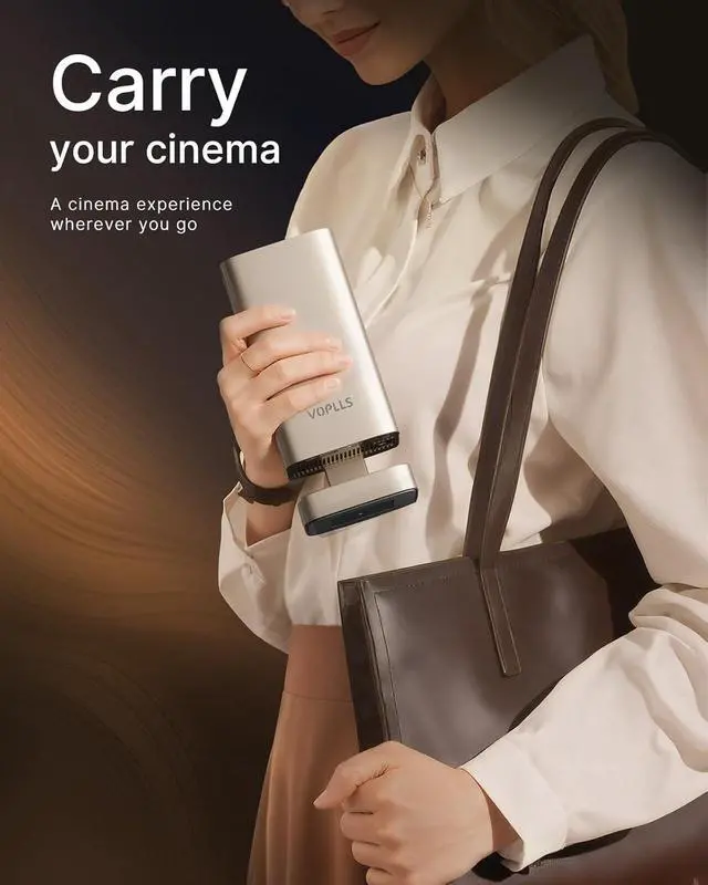 [Luxury Meets Portability] - Bid farewell to bulky projectors. Featuring a compact body, dimensional design, and refined texture, this mini portable projector transforms into a tasteful accent where technology meets art in your living room. At just 880glight as a magazinethe mini projector slips effortlessly into any bag. Perfect for travel or a summer movie night under the stars. 210° free-angle projection provides a distortion-free view from any angle, be it in a tent, a campervan, or on your ceiling. Your personal theater is now truly everywhere.