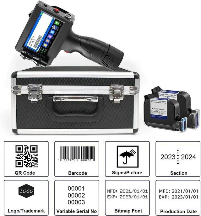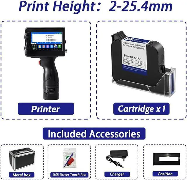 12.7mm/25.4mm Portable Metal Suitcase Handheld Inkjet Printer for Logo Label Date Image(25.4mm with 1 Ink(UK))