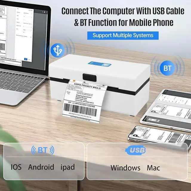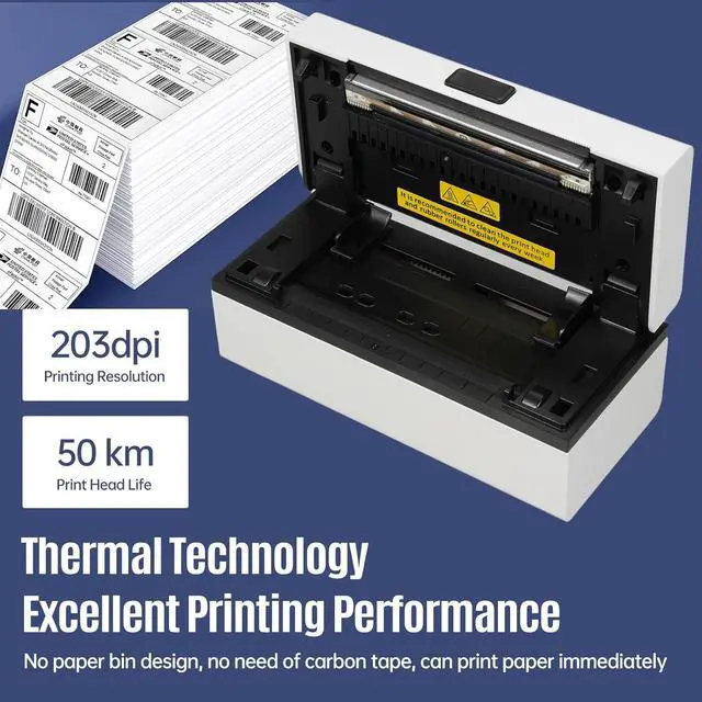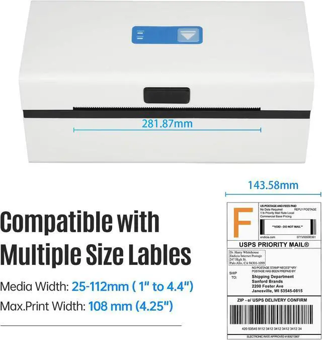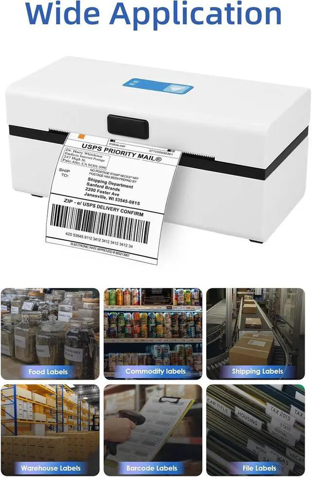 [Versatile Paper Compatibility]: Prints on thermal label paper from 1" to 4.4" width (25-112mm), suitable for a variety of shipping, warehouse, and retail labels.