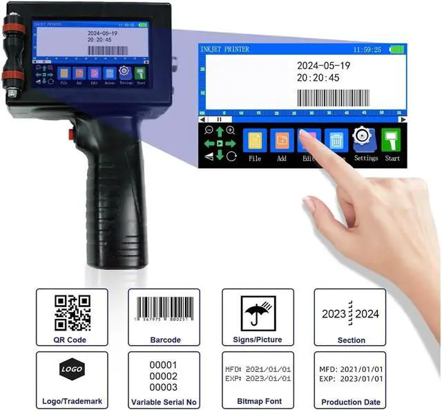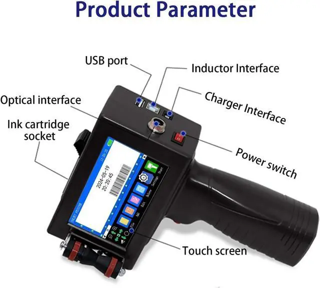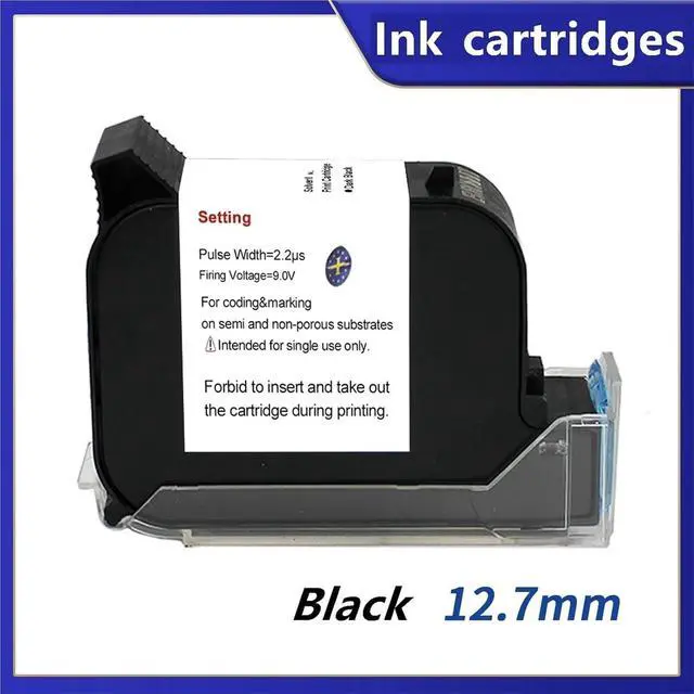 12.7mm Portable Handheld Inkjet Printer for Logo QR Barcode Batch Number Image Label(Black Ink Cartridges 1pc)