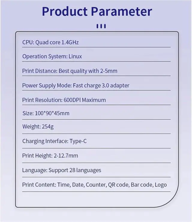 Product Name: Mini Inkjet printer