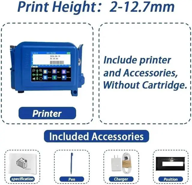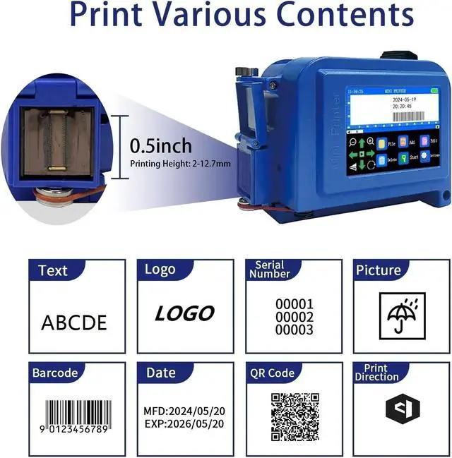 12.7mm/0.5inch Portable Mini Handheld Inkjet Printer for QR Barcode Image Logo Date Coding(Without Ink,EU)