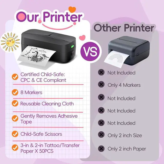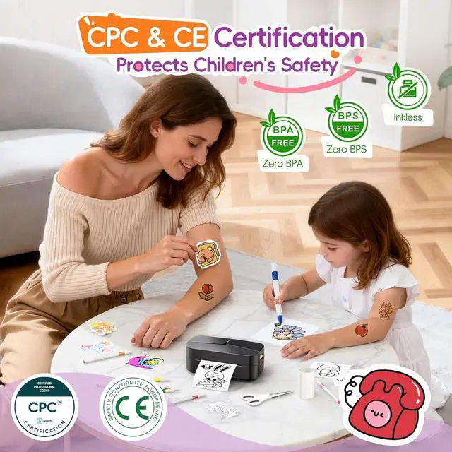 SAFE&MESS-FREE PRINTING - Advanced thermal technology means NO INK CARTRIDGES, no stains, no cleanup. Just crisp, clear prints every time.