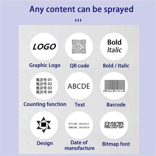 Print Content: Time, Date, Counter, QR code, Barcode, Logo, etc.