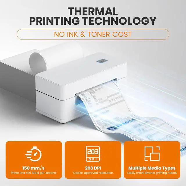 High-Speed & Clear Printing: Print one 4x6 shipping label per second with 203 DPI precision. This shipping label maker delivers clear, smudge-free barcodes and professional-quality labels to save time and boost productivity.