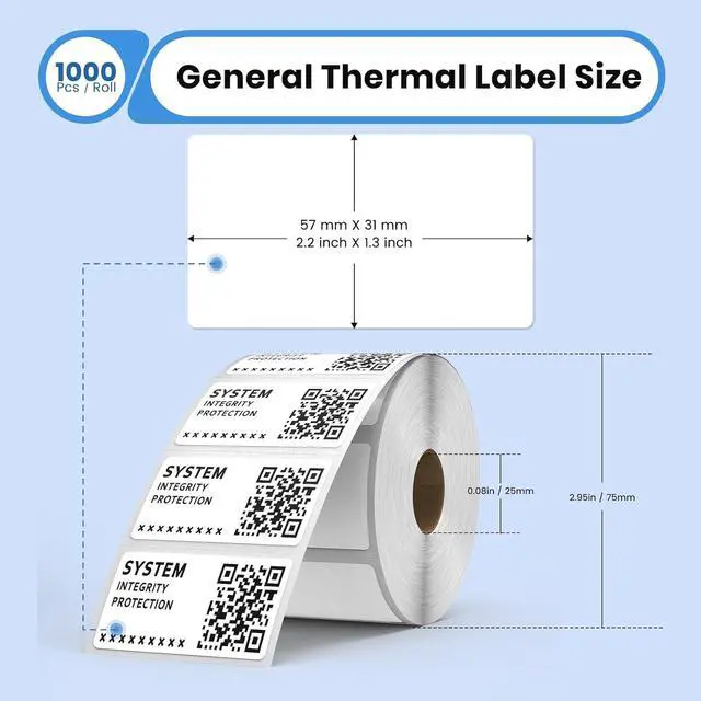 Package: Package includes one shipping thermal label printer and 1 roll of 2.2×1.2-inch thermal labels (1000 sheets per roll).
