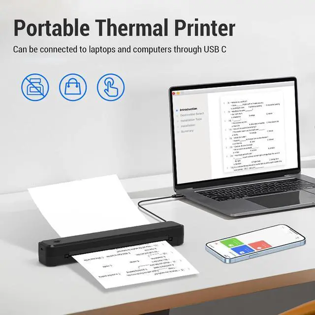 Portable Thermal Printer: This portable thermal printer uses advanced non-ink printing technology to complete 203dpi high-density printing in just 4 to 6 seconds. For home, small office, and school environments, it can print quickly and efficiently without ink or toner.