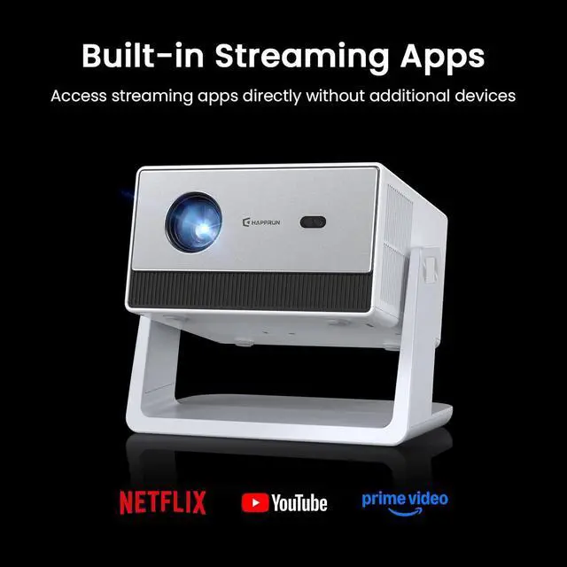 [Built-in Streaming System Without Extra Equipment] The smart projector features a built-in streaming system compatible with Netflix, YouTube, and Prime Video, allowing you to watch over 1,200,000+ videos without extra equipment. With plug-and-play convenience, movie watching becomes effortless and hassle-free.