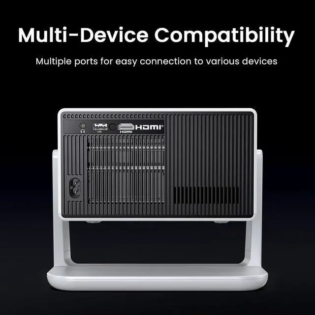 [Multi-device Compatibility] Equipped with HDMI, USB, and a 3.5mm headphone jack, the smart projector is compatible with TV sticks, Chromecast, Roku, smartphones (iOS/Android), PCs, laptops, PS4, PS5, and moremeeting a wide range of entertainment needs.