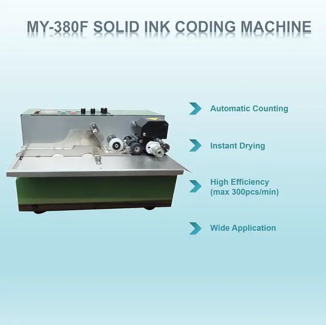 Solid-ink Coding This coding machine adopts solid-ink coding, which has high definition and strong adhesion. The ink dries immediately when printing.