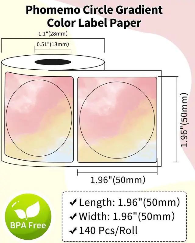 Specifications: 1.96"x1.96" thermal sticker labels. Quantity: 1 Rolls/140 labels per. Color: Black on Rainbow, easy to peel off.