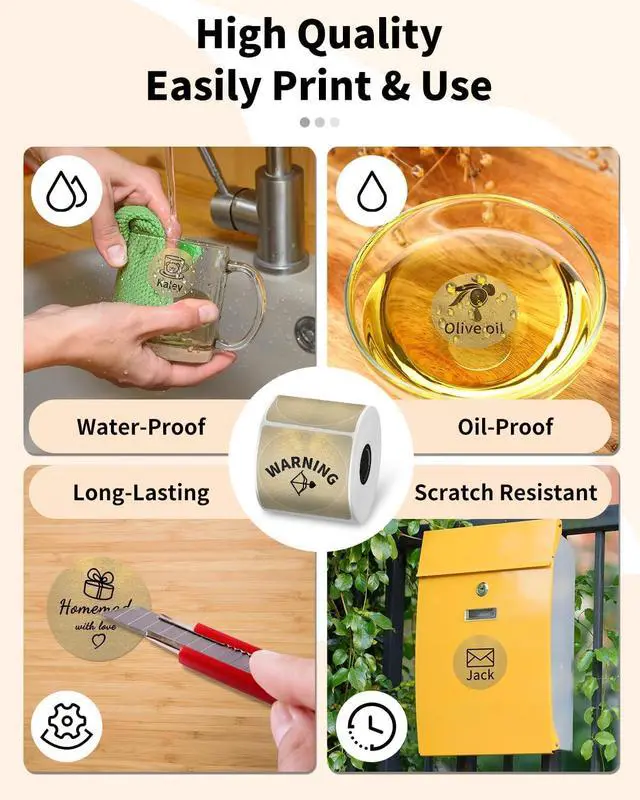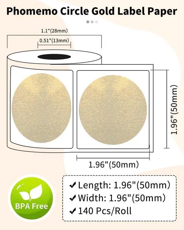 [Details] Label size of 1.96" x 1.96" (50mm x 50mm), Quantity: 1 Rolls/140 labels, Color: Black on Golden.