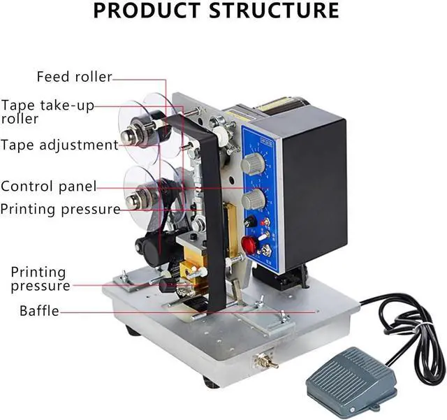 ELECTRIC RIBBON CODING MACHINEDate label hot stamp printer can be for to print production date (year, month, day), batch number, expiry date, weight, etc. Printing materials include: plastic film, various laminated films, aluminum/plastic film, paper/plastic sheet, leather, plastic products, etc