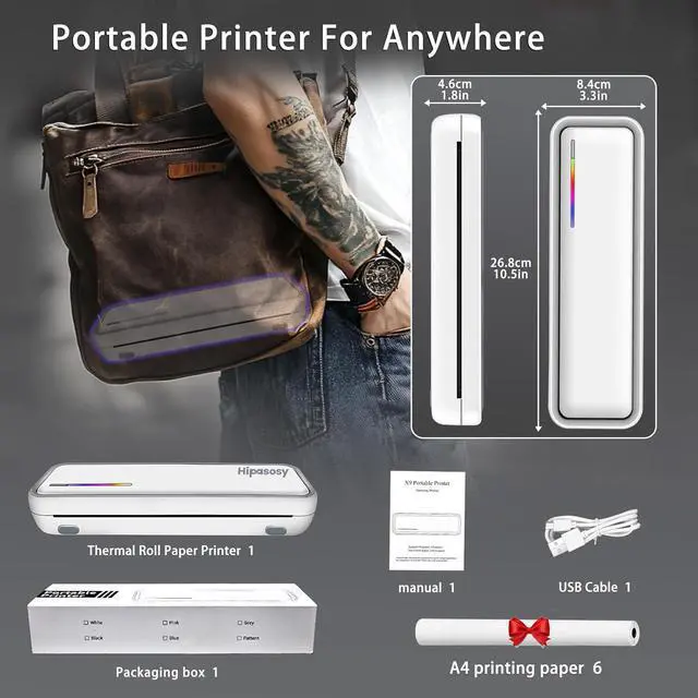Ultra-Portable PrinterThis compact thermal printer features an ultra-lightweight design, measuring 10.5 x 3.5 x 1.8 inches and weighing just 1.4 lbs, making it easy to slip into a bag and take anywhere for instant printing. To use, simply download the "Tiny Print" app and connect via Bluetooth for wireless printing. The app also offers a variety of creative content to enhance your printing experience, from customizable templates to ready-to-print designs.