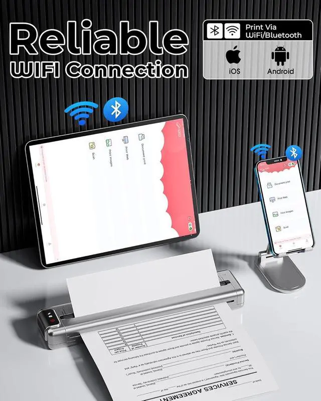 [Portable Wireless Printer]: Itari inkless printer supports Bluetooth, WIFI and USB connection to meet your daily demand; This small printer wireless is compatible with your smartphones or tablets including iOS and Android devices, print wirelessly at anytime anywhere; For remote printing, please make sure you have a stable 2.4GHZ internet wifi router for the printer keep its connectivity; If you would like to print via Mac or ChromeOS systems, please connect with USB attached, installation in one minute without any complex process; (Note: Please do not use charger with output voltage above 5V)
