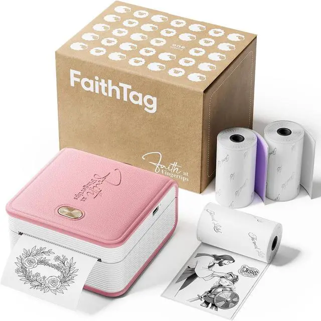 FaithTag Bible Study Mini Printer F21 Kit with 3 Rolls of 2 Colorful Stickers