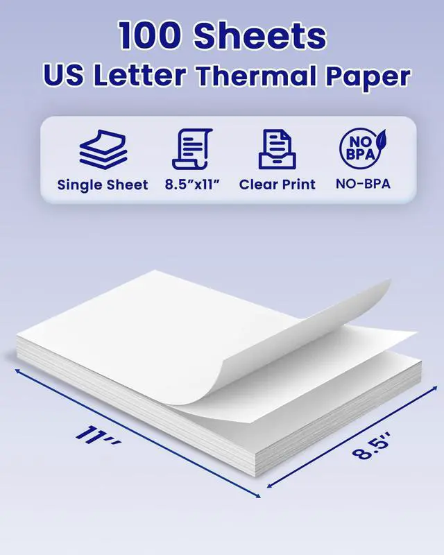 Paper Specifications: 100 Sheets 8.5'' x 11'' US Letter size thermal paper, single sheet thermal paper. Note: TATTMUSE thermal paper is designed for use with letter portable printers, not compatible with inkjet or laser printer