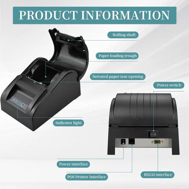Easy Paper LoadingDesigned for hassle-free paper installation, compatible with 57.5±0.5mm wide rolls, ensuring quick setup and smooth workflow