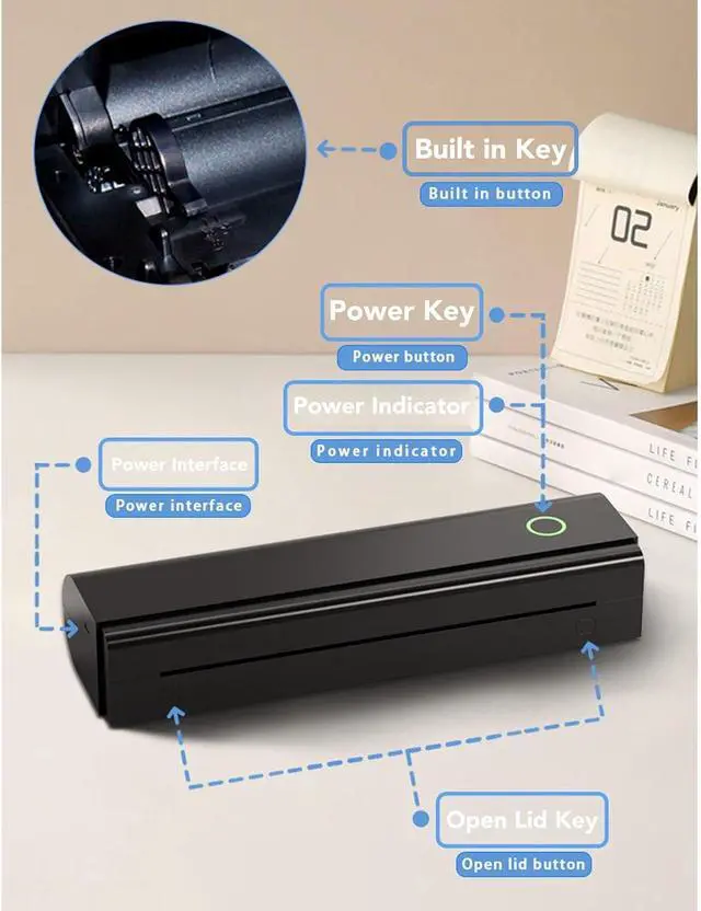 PRINTING PERFORMANCE:With a print speed of 15mm/s and 203DPI accuracy,Compact Inkless Printer ensures high-quality printing. The printhead boasts a lifespan of 50KM, guaranteeing consistent performance and reliability for extended use.