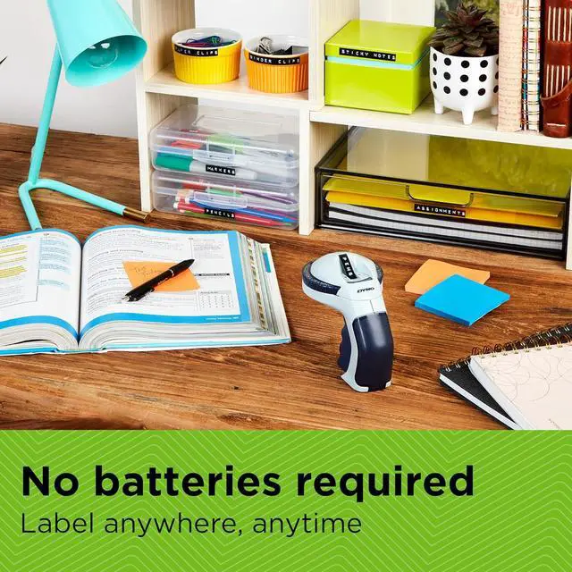 Comfortable and easy-to-use, the DYMO Omega is a great embossing label maker for cost-conscious homeowners and DIY enthusiasts. Featuring an intuitive turn-and-click labelling system, this embosser creates fun, easy-to-cut labels. The tapes are easy to load while a Soft-Grip handle provides an extra measure of comfort. It uses no batteries, yet prints letters, numbers and symbols effortlessly. Explore your artistic side and use DYMO embossing labels to enhance your scrapbooks, photo albums or DIY projectsmaybe even your craft cupboard or closet! This starter kit includes 3 black label tapes.